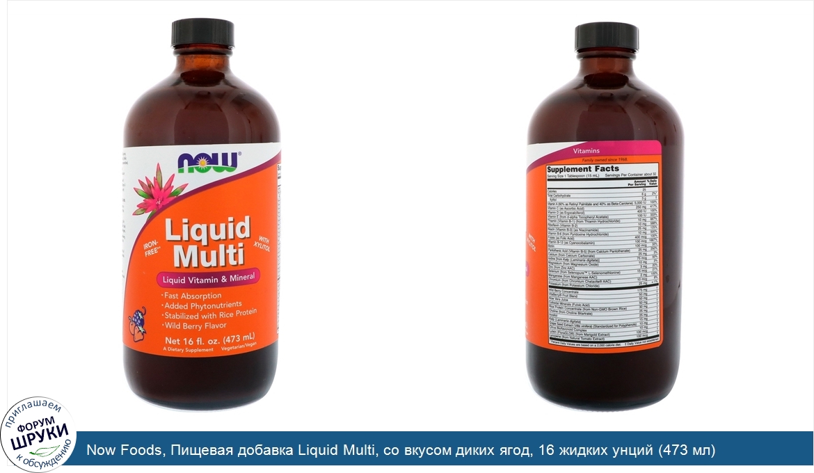 Друзья, если у вас есть отзыв/дополнение/комментарий/вопрос относительно Now Foods, Пищевая добавка Liquid Multi, со вкусом диких ягод, 16 жидких унций (473 мл) - напишите его ответом в эту тему (это будет полезно всему сообществу в целом и вам в отдельности).