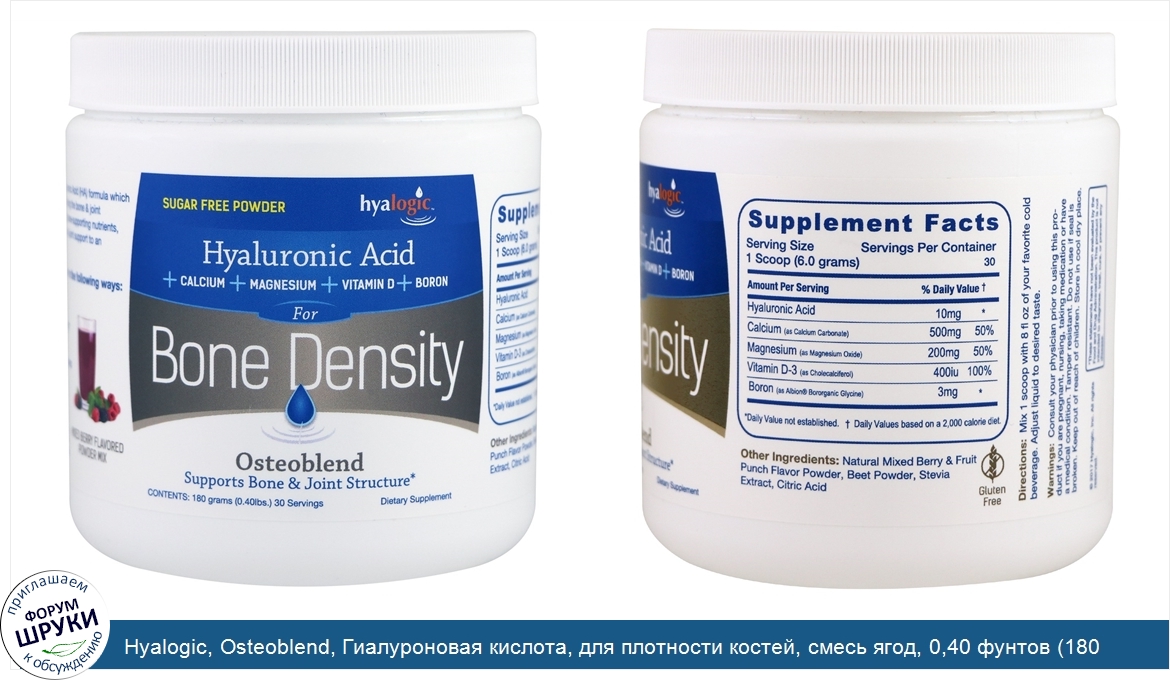 Друзья, если у вас есть отзыв/дополнение/комментарий/вопрос относительно Hyalogic, Osteoblend, Гиалуроновая кислота, для плотности костей, смесь ягод, 0,40 фунтов (180 г) - напишите его ответом в эту тему (это будет полезно всему сообществу в целом и вам в отдельности).
