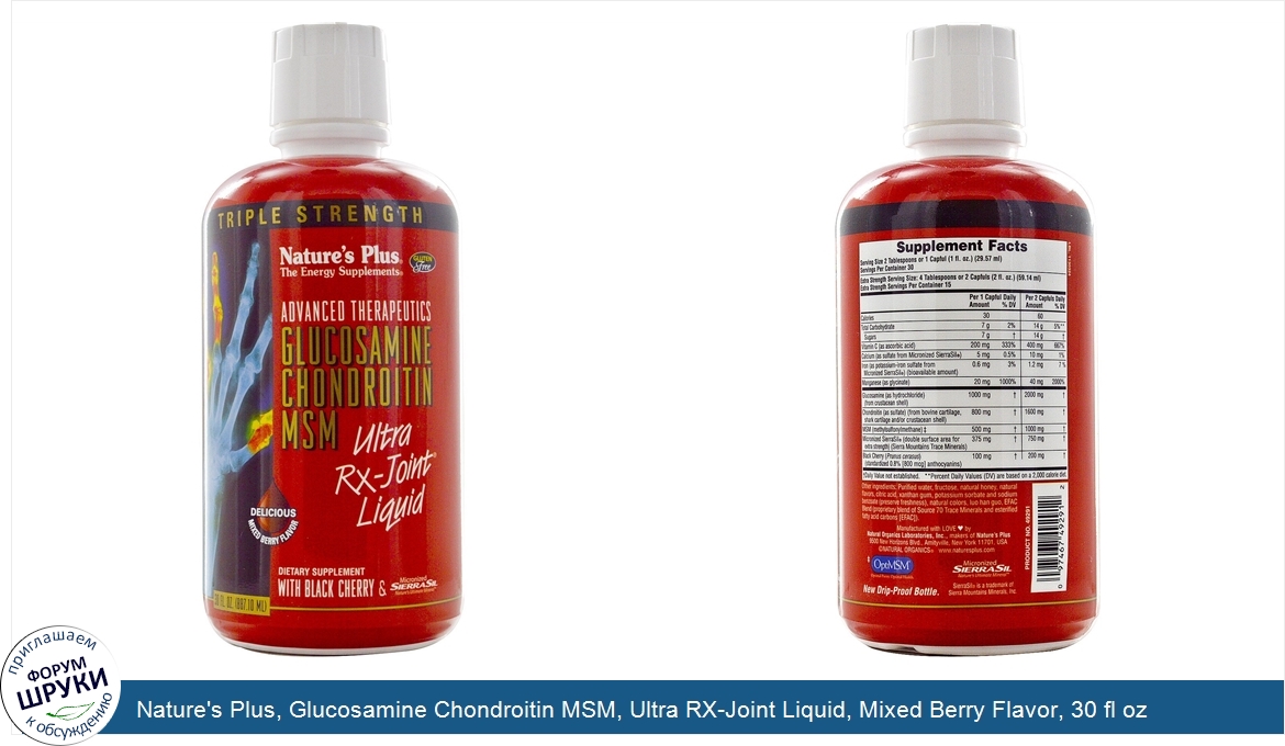Друзья, если у вас есть отзыв/дополнение/комментарий/вопрос относительно Nature's Plus, Glucosamine Chondroitin MSM, Ultra RX-Joint Liquid, Mixed Berry Flavor, 30 fl oz (887.10 ml) - напишите его ответом в эту тему (это будет полезно всему сообществу в целом и вам в отдельности).