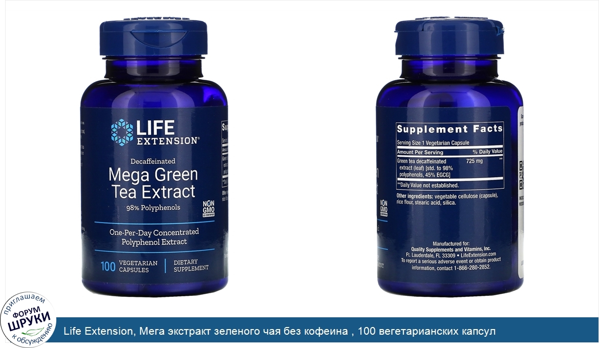 Life Extension, Мега экстракт зеленого чая без кофеина , 100 вегетарианских капсул