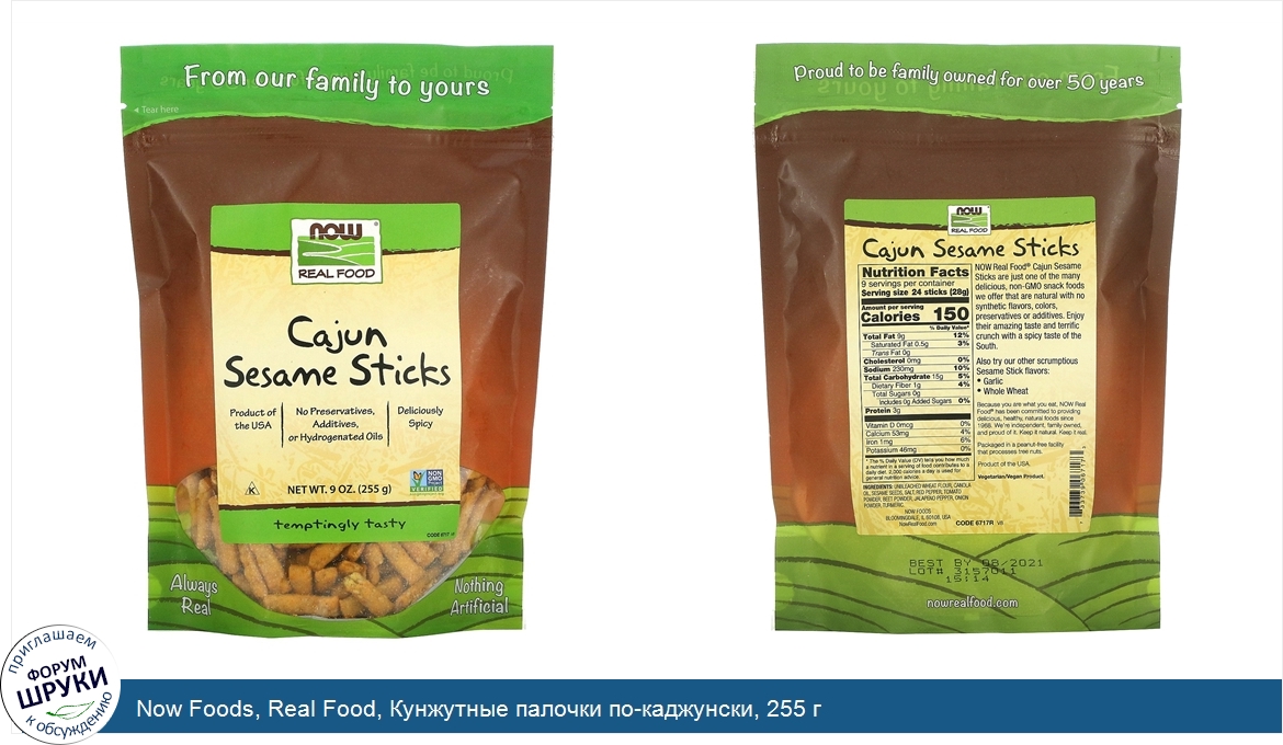 Now Foods, Real Food, Кунжутные палочки по-каджунски, 255 г