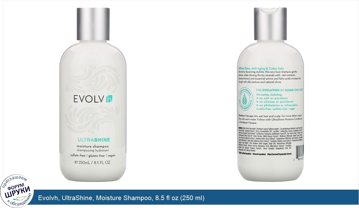 Друзья, если у вас есть отзыв/дополнение/комментарий/вопрос относительно Evolvh, UltraShine, Moisture Shampoo, 8.5 fl oz (250 ml) - напишите его ответом в эту тему (это будет полезно всему сообществу в целом и вам в отдельности).