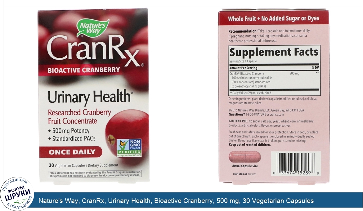 Друзья, если у вас есть отзыв/дополнение/комментарий/вопрос относительно Nature's Way, CranRx, Urinary Health, Bioactive Cranberry, 500 mg, 30 Vegetarian Capsules - напишите его ответом в эту тему (это будет полезно всему сообществу в целом и вам в отдельности).