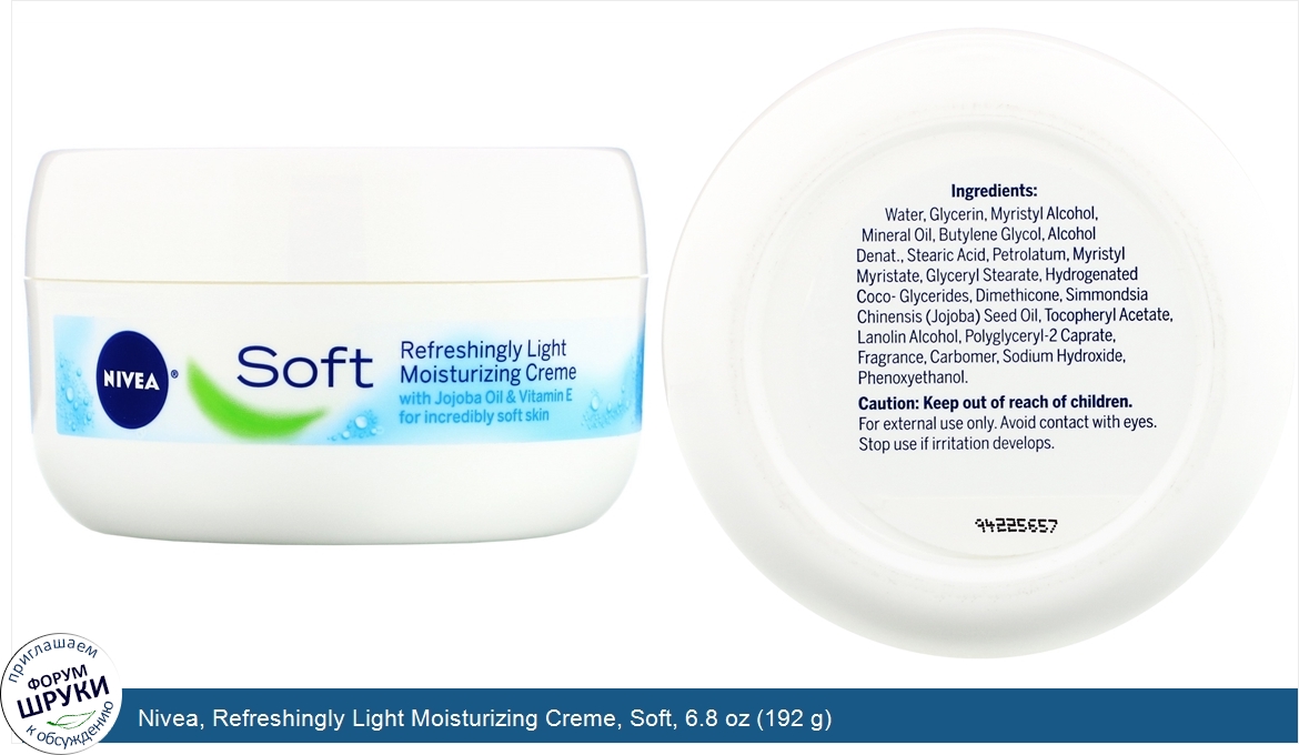 Друзья, если у вас есть отзыв/дополнение/комментарий/вопрос относительно Nivea, Refreshingly Light Moisturizing Creme, Soft, 6.8 oz (192 g) - напишите его ответом в эту тему (это будет полезно всему сообществу в целом и вам в отдельности).