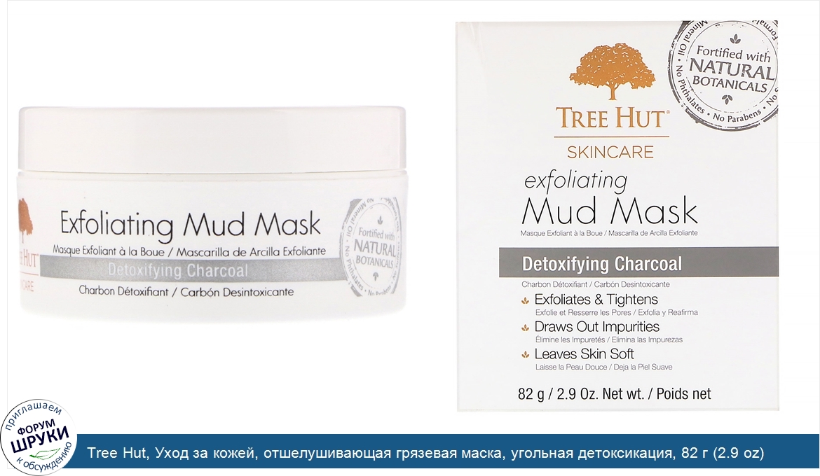 [DESCRIPT]Fortified with Natural Ingredients. No Parabens. No Sulfates. No Phthalates. No Mineral Oil. Exfoliates Tightens. Draws Out Impurities. Leave Skin Soft. Purify your skin with the activated charcoal of Tree Hut Exfoliating Mud Mask. The Kaolin draws out impurities while the exotic Black Sand exfoliates to revitalize the appearance of dull skin and leave skin smooth.[/DESCRIPT]... (описание дополняется)