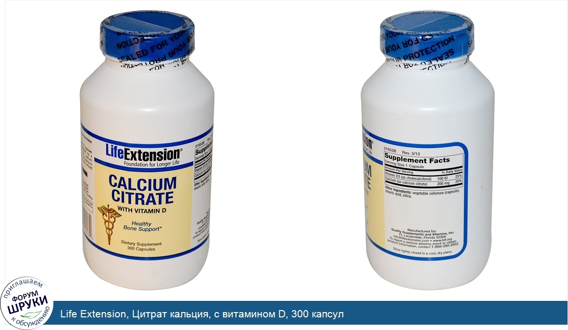 Life Extension, Цитрат кальция, с витамином D, 300 капсул