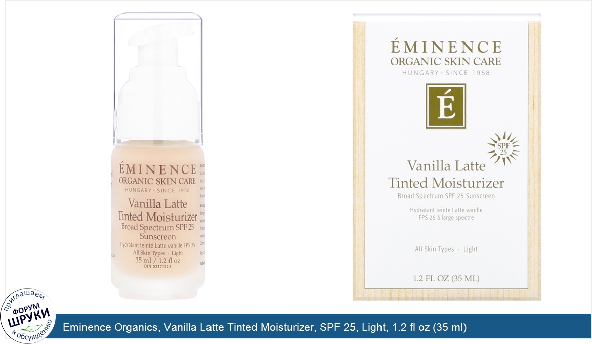 Eminence Organics, Vanilla Latte Tinted Moisturizer, SPF 25, Light, 1.2 fl oz (35 ml)