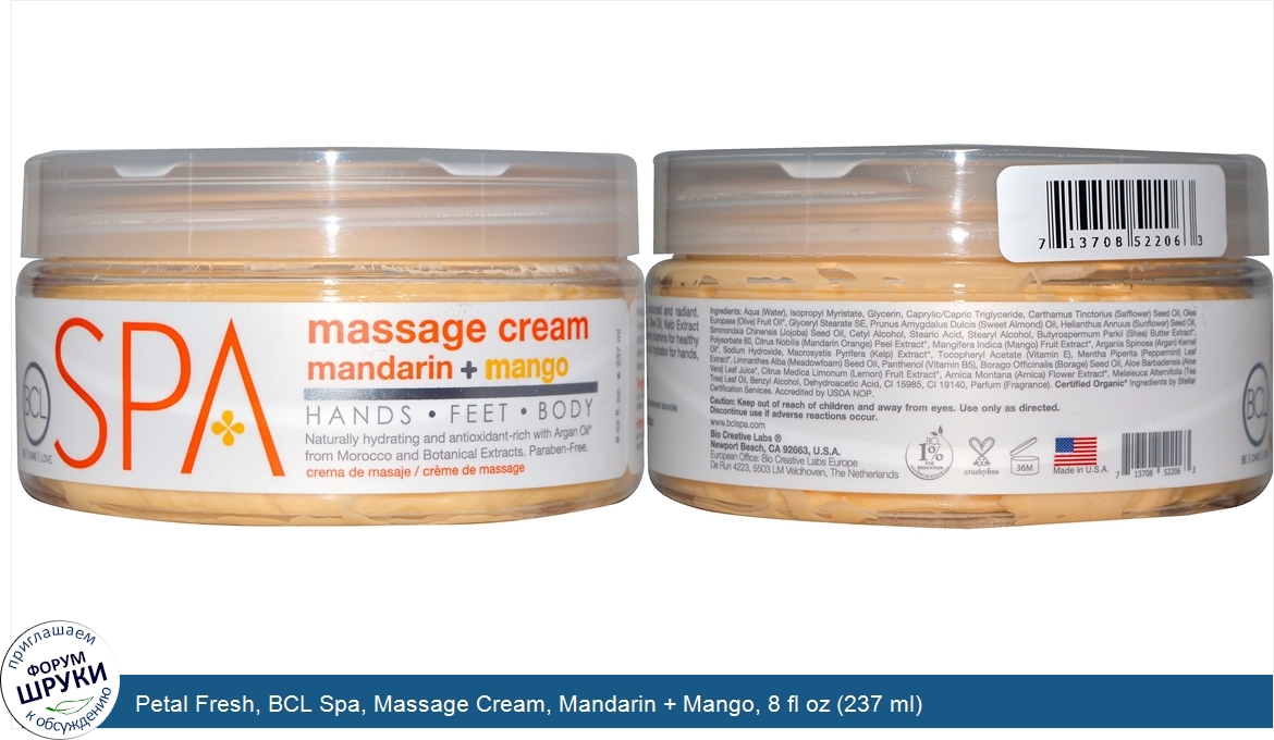 Petal Fresh, BCL Spa, Massage Cream, Mandarin + Mango, 8 fl oz (237 ml)