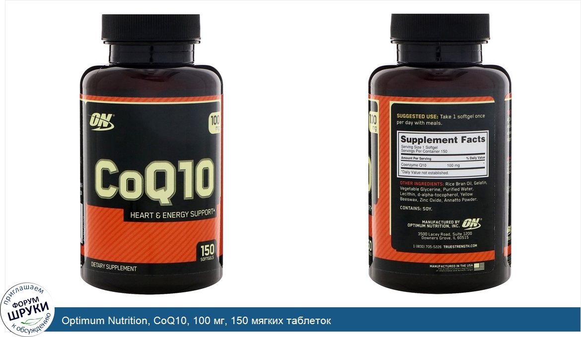 Optimum Nutrition, CoQ10, 100 мг, 150 мягких таблеток