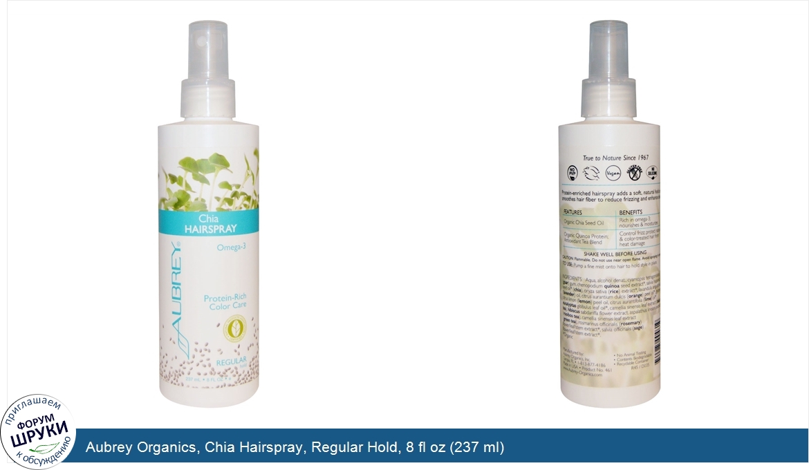 Друзья, если у вас есть отзыв/дополнение/комментарий/вопрос относительно Aubrey Organics, Chia Hairspray, Regular Hold, 8 fl oz (237 ml) - напишите его ответом в эту тему (это будет полезно всему сообществу в целом и вам в отдельности).