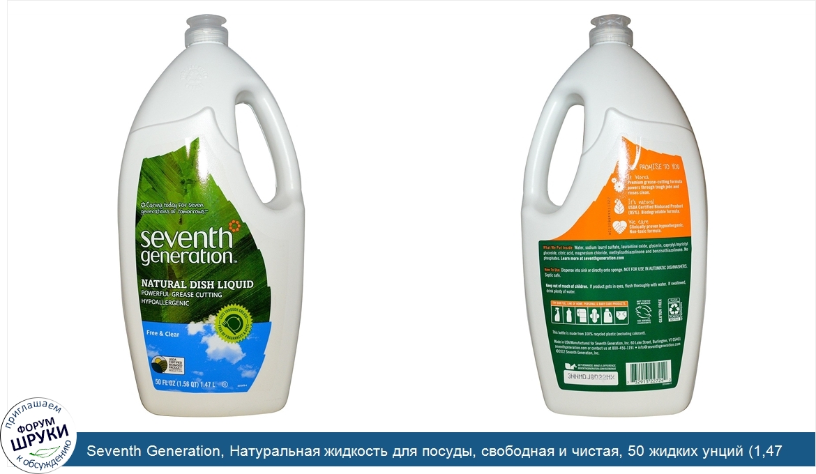 ru Seventh Generation, Натуральная жидкость для посуды, свободная и чистая, 50 жидких унций (1,47 л)