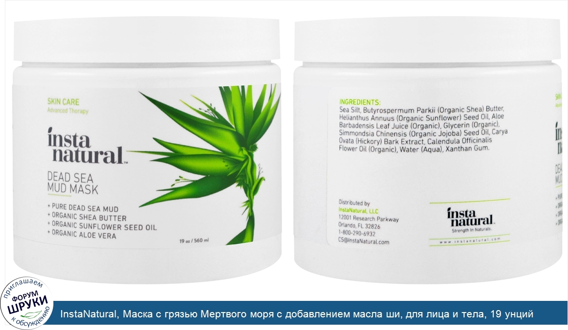 ru InstaNatural, Маска с грязью Мертвого моря с добавлением масла ши, для лица и тела, 19 унций (560 мл)