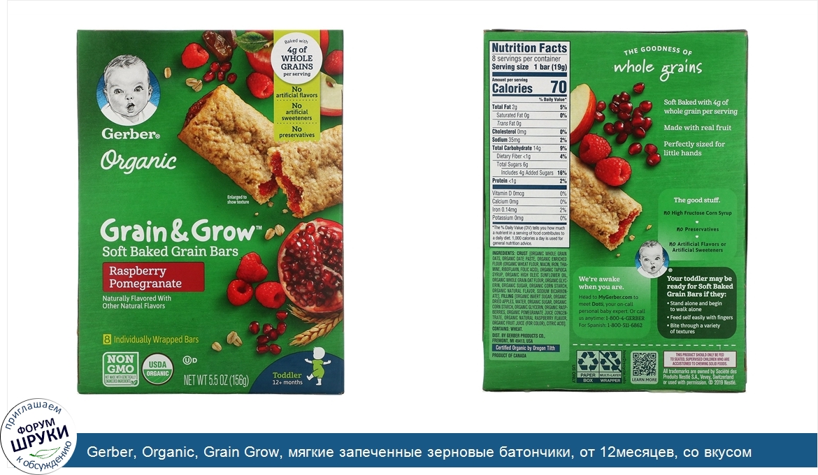 Друзья, если у вас есть отзыв/дополнение/комментарий/вопрос относительно Gerber, Organic, Grain Grow, мягкие запеченные зерновые батончики, от 12месяцев, со вкусом малины и граната, 8батончиков в индивидуальной упаковке - напишите его ответом в эту тему (это будет полезно всему сообществу в целом и вам в отдельности).