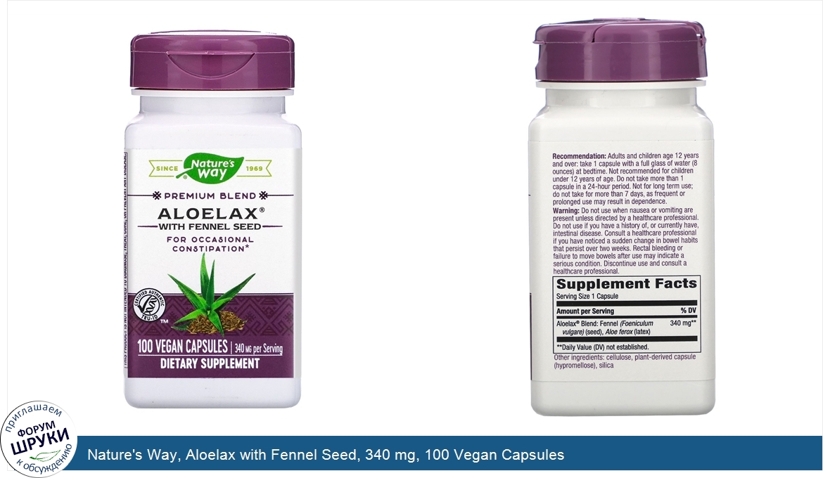 Друзья, если у вас есть отзыв/дополнение/комментарий/вопрос относительно Nature's Way, Aloelax with Fennel Seed, 340 mg, 100 Vegan Capsules - напишите его ответом в эту тему (это будет полезно всему сообществу в целом и вам в отдельности).