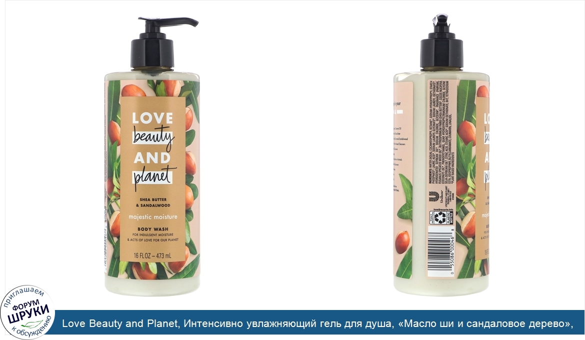 Love Beauty and Planet, Интенсивно увлажняющий гель для душа, «Масло ши и сандаловое дерево», 473мл