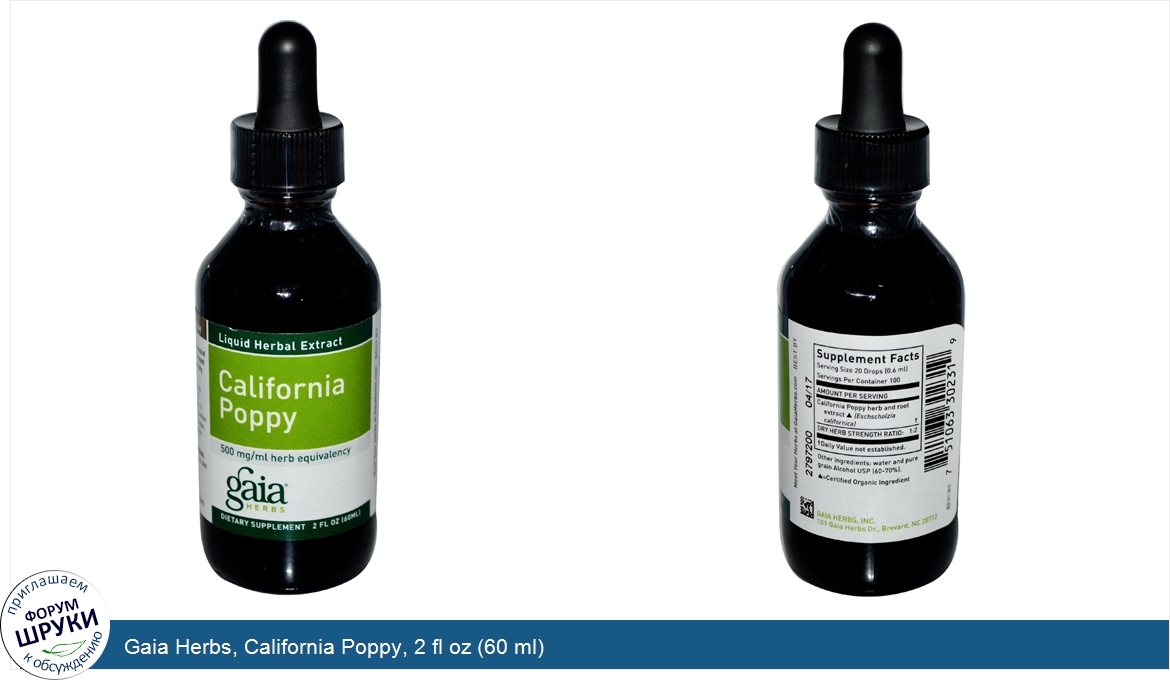 Друзья, если у вас есть отзыв/дополнение/комментарий/вопрос относительно Gaia Herbs, California Poppy, 2 fl oz (60 ml) - напишите его ответом в эту тему (это будет полезно всему сообществу в целом и вам в отдельности).