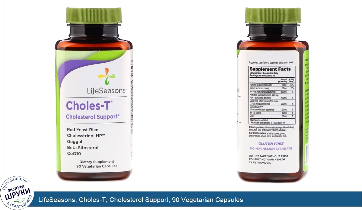 [DESCRIPT]Red Yeast Rice. Cholesstrinol HP™. Guggul. Beta Sitosterol. CoQ10. Dietary Supplement. Gluten Free. No Magnesium Stearate. Choles-T Cholesterol Support. Helps maintain healthy cholesterol and triglyceride levels already in the normal range. Promotes healthy cardiovascular function. Enhances natural liver function. LifeSeasons Formulated for Life. We create products that are formulated to address specific health concerns that commonly occur through all stages of life. We develop the most effective and potent combination of nutrients, using clinically-tested, natural ingredients that the body can easily absorb. Choles-T® promotes healthy heart and liver function, thus supporting cardiovascular health. Red Yeast Rice (free of citrinin). - Supports cholesterol levels already within the normal range. Cholesstrinol HP™. - Helps maintain cholesterol and triglyceride levels already within the normal range. Guggul. - Provides support for healthy fat metabolism and liver function. Beta Sitosterol (from Phytosterol Complex). - Plant compound that may help maintain healthy levels of blood cholesterol. CoQ10. - Powerful antioxidant properties to support cardiovascular health.[/DESCRIPT]... (описание дополняется)