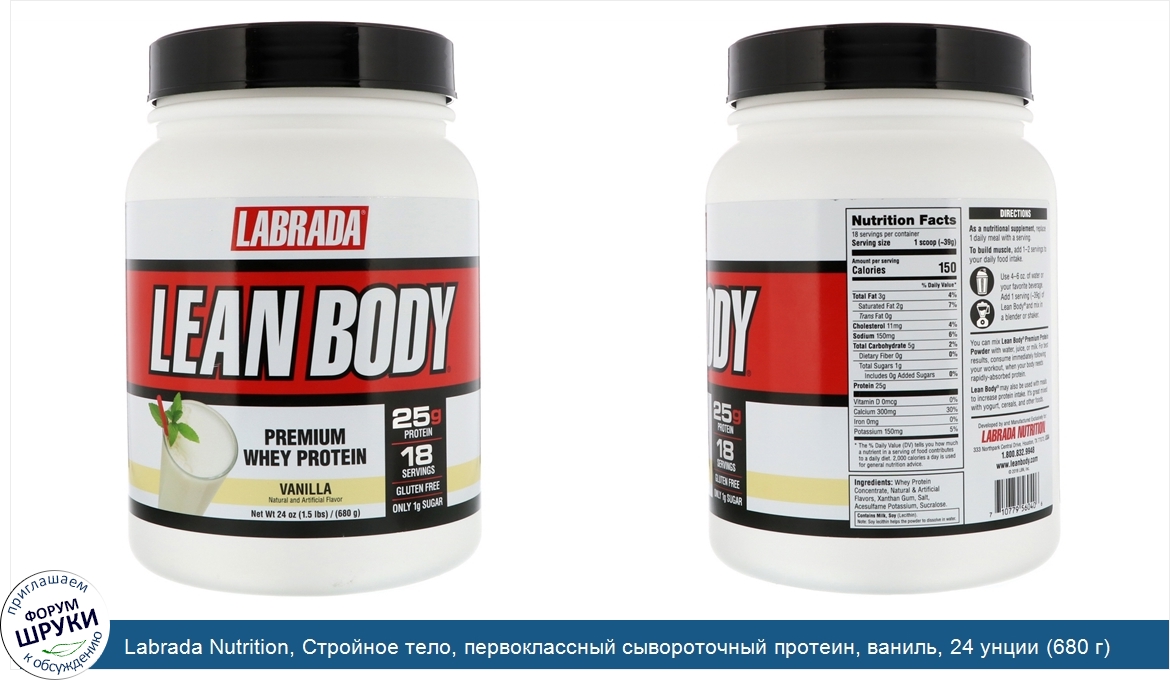 Друзья, если у вас есть отзыв/дополнение/комментарий/вопрос относительно Labrada Nutrition, Стройное тело, первоклассный сывороточный протеин, ваниль, 24 унции (680 г) - напишите его ответом в эту тему (это будет полезно всему сообществу в целом и вам в отдельности).