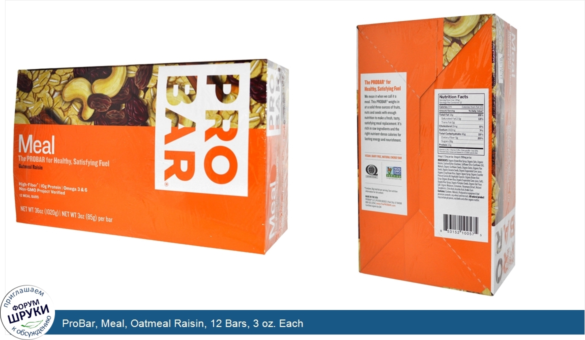 ProBar, Meal, Oatmeal Raisin, 12 Bars, 3 oz. Each