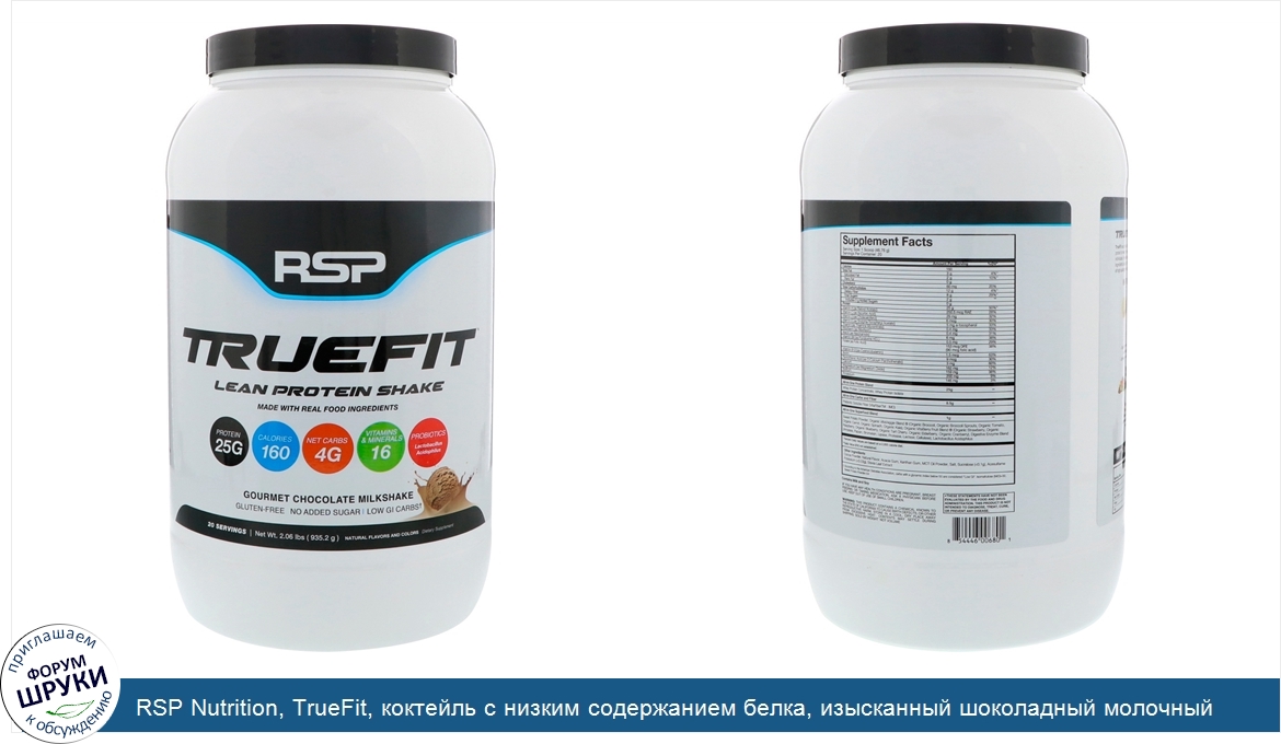 ru RSP Nutrition, TrueFit, коктейль с низким содержанием белка, изысканный шоколадный молочный коктейль, 935,2 г
