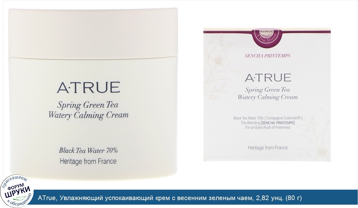Друзья, если у вас есть отзыв/дополнение/комментарий/вопрос относительно ATrue, Увлажняющий успокаивающий крем с весенним зеленым чаем, 2,82 унц. (80 г) - напишите его ответом в эту тему (это будет полезно всему сообществу в целом и вам в отдельности).