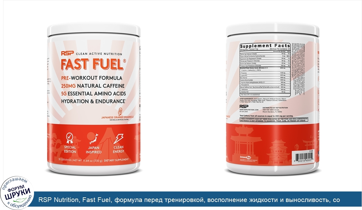 ru RSP Nutrition, Fast Fuel, формула перед тренировкой, восполнение жидкости и выносливость, со вкусом японского апельсинового мороженого Dreamsicle,...