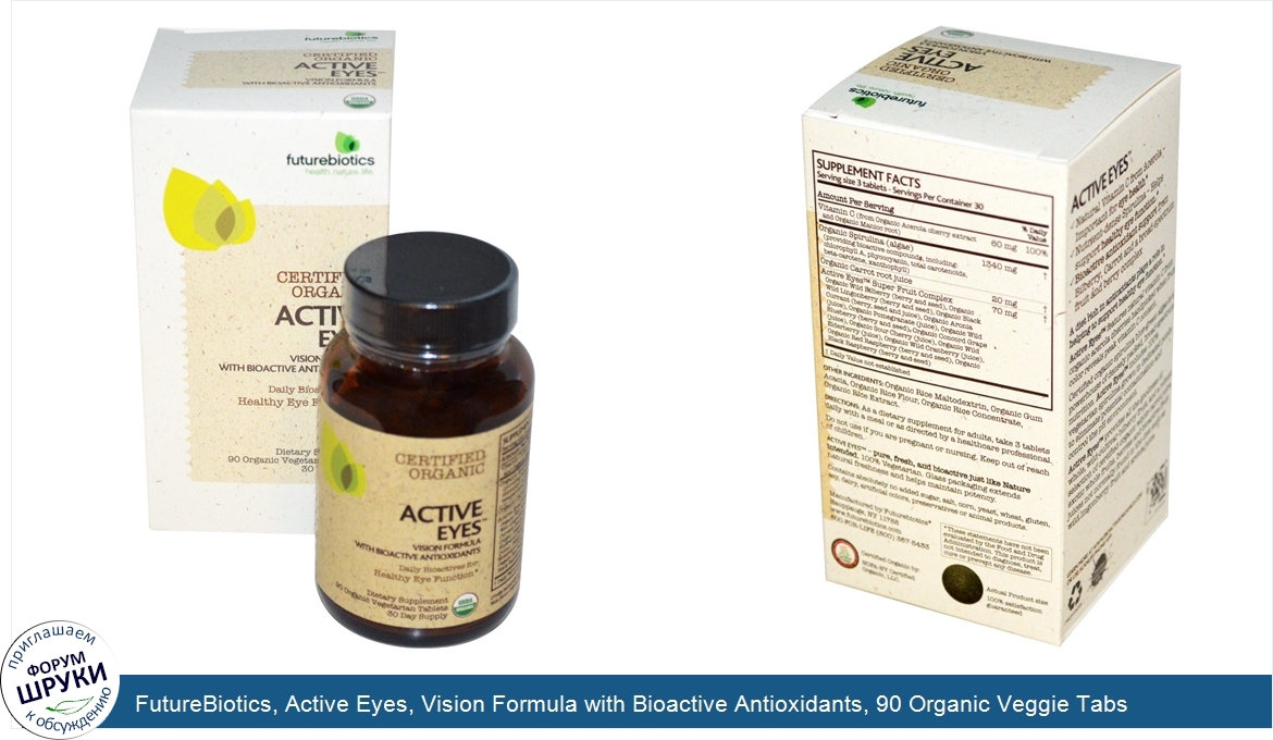 FutureBiotics, Active Eyes, Vision Formula with Bioactive Antioxidants, 90 Organic Veggie Tabs