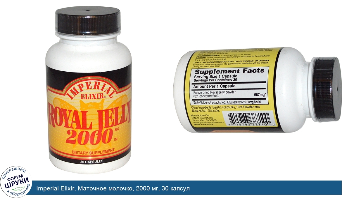 Imperial Elixir, Маточное молочко, 2000 мг, 30 капсул