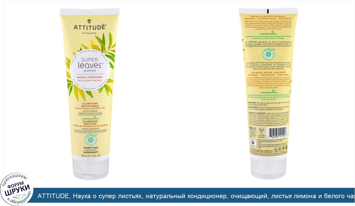 Друзья, если у вас есть отзыв/дополнение/комментарий/вопрос относительно ATTITUDE, Наука о супер листьях, натуральный кондиционер, очищающий, листья лимона и белого чая, 8 унций (240 мл) - напишите его ответом в эту тему (это будет полезно всему сообществу в целом и вам в отдельности).