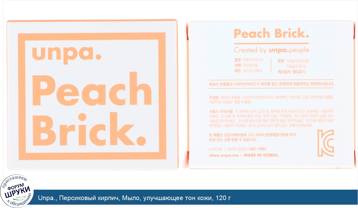 Друзья, если у вас есть отзыв/дополнение/комментарий/вопрос относительно Unpa., Персиковый кирпич, Мыло, улучшающее тон кожи, 120 г - напишите его ответом в эту тему (это будет полезно всему сообществу в целом и вам в отдельности).