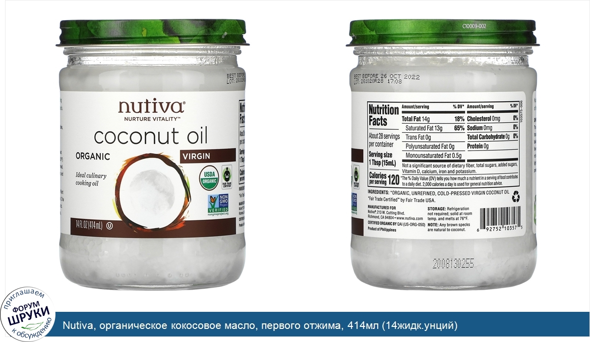 Друзья, если у вас есть отзыв/дополнение/комментарий/вопрос относительно Nutiva, органическое кокосовое масло, первого отжима, 414мл (14жидк.унций) - напишите его ответом в эту тему (это будет полезно всему сообществу в целом и вам в отдельности).