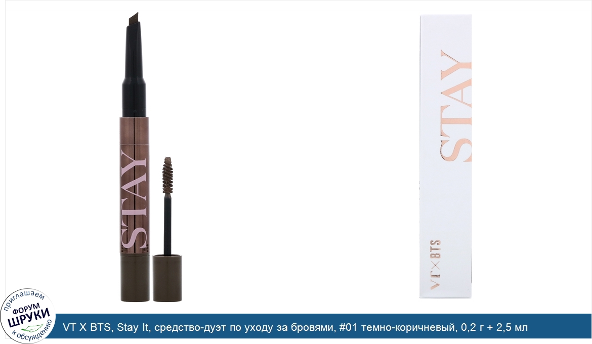 VT X BTS, Stay It, средство-дуэт по уходу за бровями, #01 темно-коричневый, 0,2 г + 2,5 мл