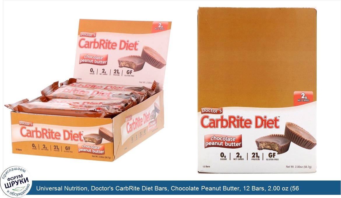 Universal Nutrition, Doctor's CarbRite Diet Bars, Chocolate Peanut Butter, 12 Bars, 2.00 oz (56.7 g) Each