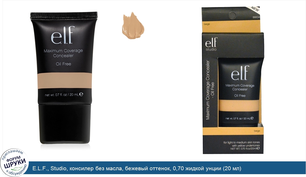 Друзья, если у вас есть отзыв/дополнение/комментарий/вопрос относительно E.L.F., Studio, консилер без масла, бежевый оттенок, 0,70 жидкой унции (20 мл) - напишите его ответом в эту тему (это будет полезно всему сообществу в целом и вам в отдельности).