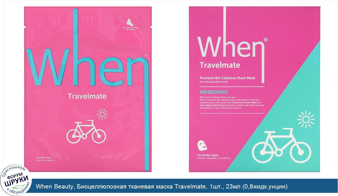 When Beauty, Биоцеллюлозная тканевая маска Travelmate, 1шт., 23мл (0,8жидк.унции)