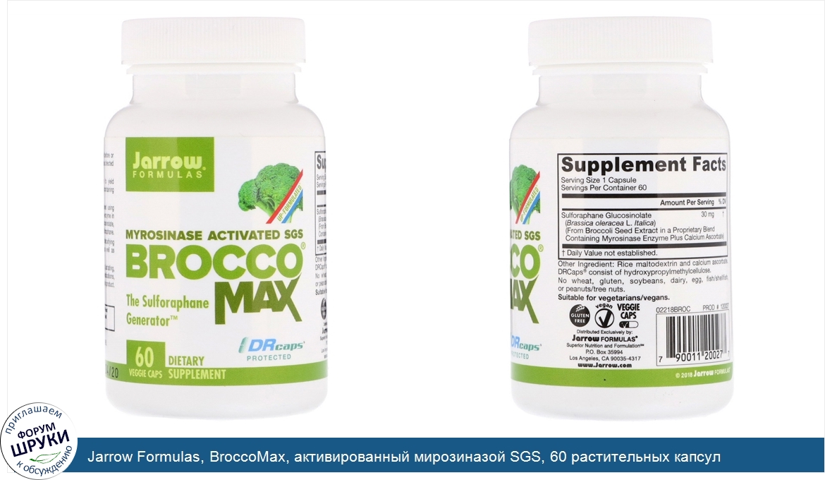 Специальная формула. Генератор сульфорафана. Защита DRcaps®. Пищевая добавка. Подходит для вегетарианцев / веганов. Не содержит глютена. Веганский продукт. Растительные капсулы. Эксперименты в условиях in vitro п...