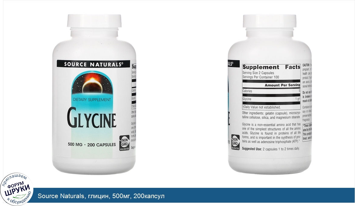 ru Source Naturals, глицин, 500мг, 200капсул