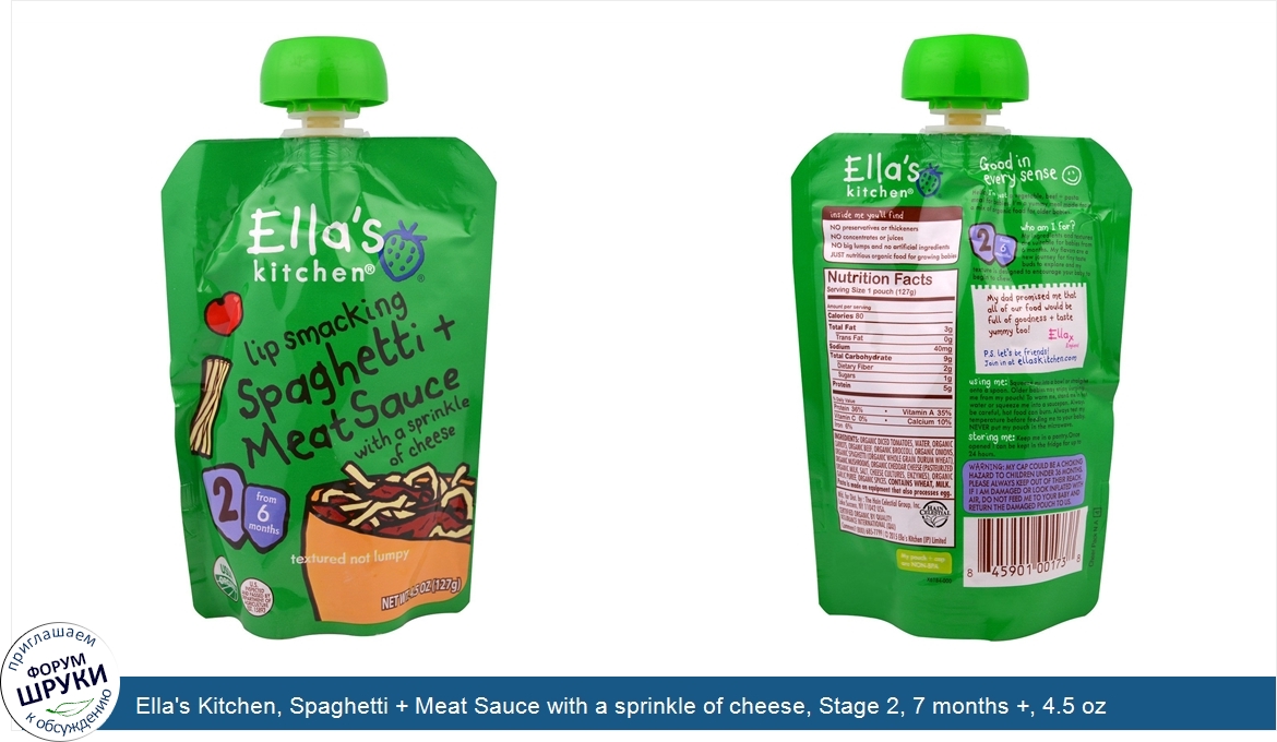 Друзья, если у вас есть отзыв/дополнение/комментарий/вопрос относительно Ella's Kitchen, Spaghetti + Meat Sauce with a sprinkle of cheese, Stage 2, 7 months +, 4.5 oz - напишите его ответом в эту тему (это будет полезно всему сообществу в целом и вам в отдельности).