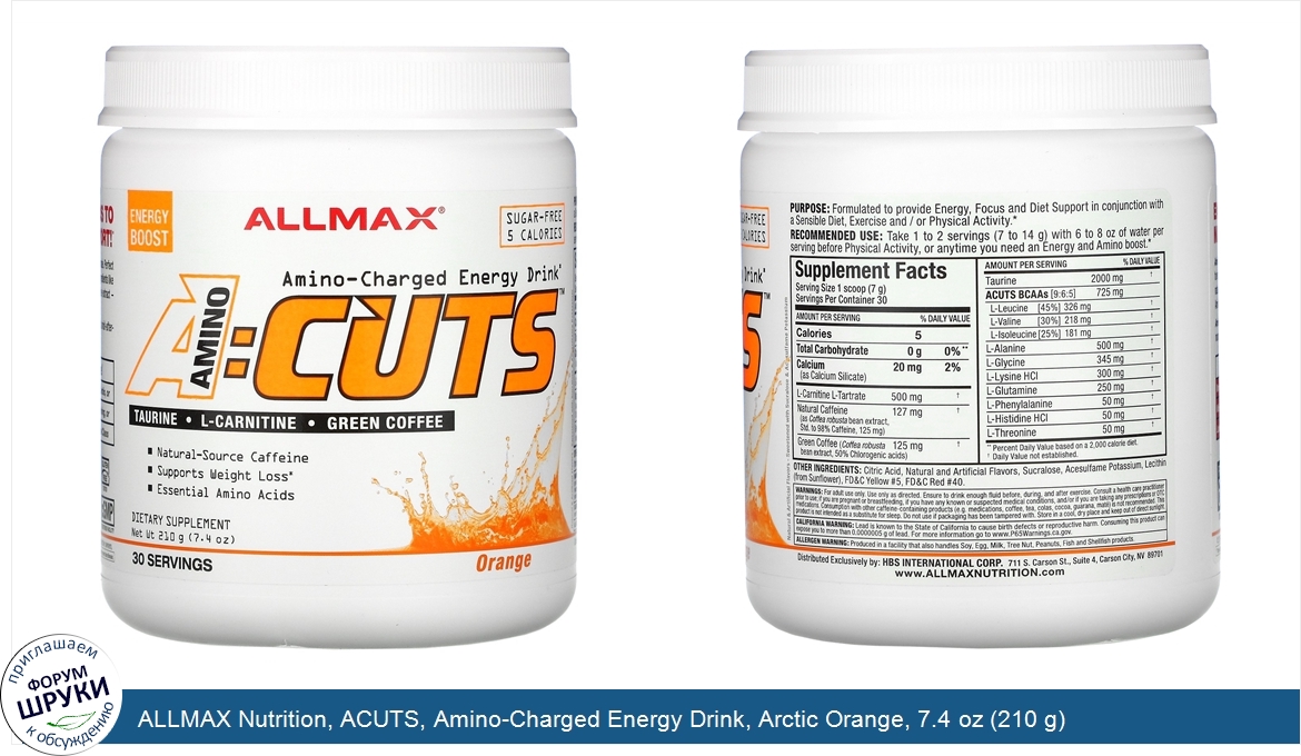 Друзья, если у вас есть отзыв/дополнение/комментарий/вопрос относительно ALLMAX Nutrition, ACUTS, Amino-Charged Energy Drink, Arctic Orange, 7.4 oz (210 g) - напишите его ответом в эту тему (это будет полезно всему сообществу в целом и вам в отдельности).
