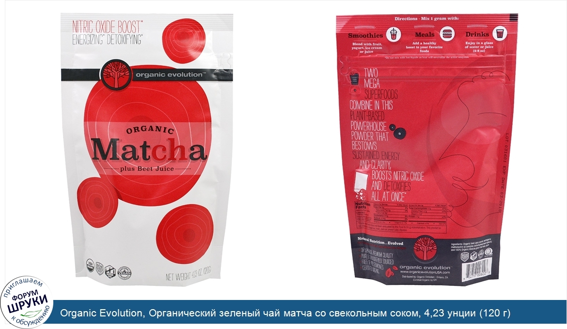 Organic Evolution, Органический зеленый чай матча со свекольным соком, 4,23 унции (120 г)