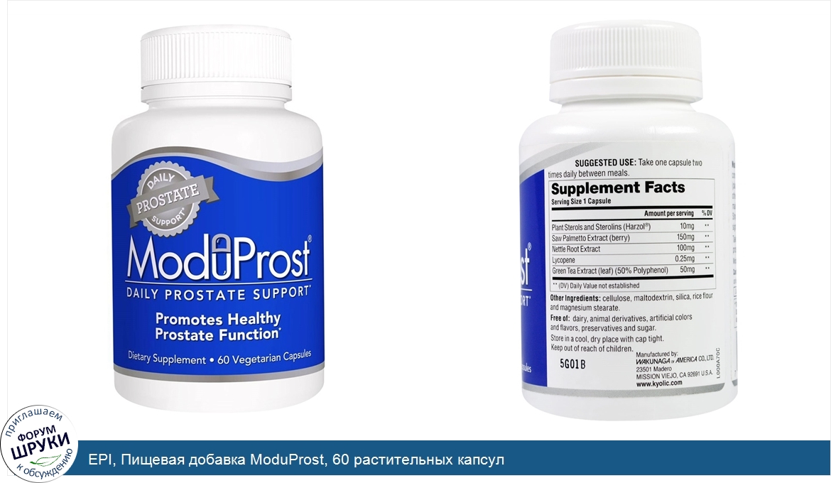 ru EPI, Пищевая добавка ModuProst, 60 растительных капсул