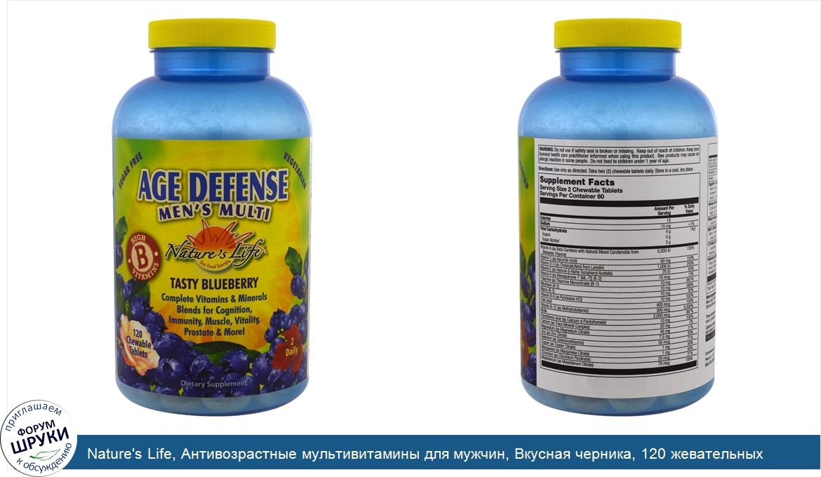 Друзья, если у вас есть отзыв/дополнение/комментарий/вопрос относительно Nature's Life, Антивозрастные мультивитамины для мужчин, Вкусная черника, 120 жевательных таблеток - напишите его ответом в эту тему (это будет полезно всему сообществу в целом и вам в отдельности).