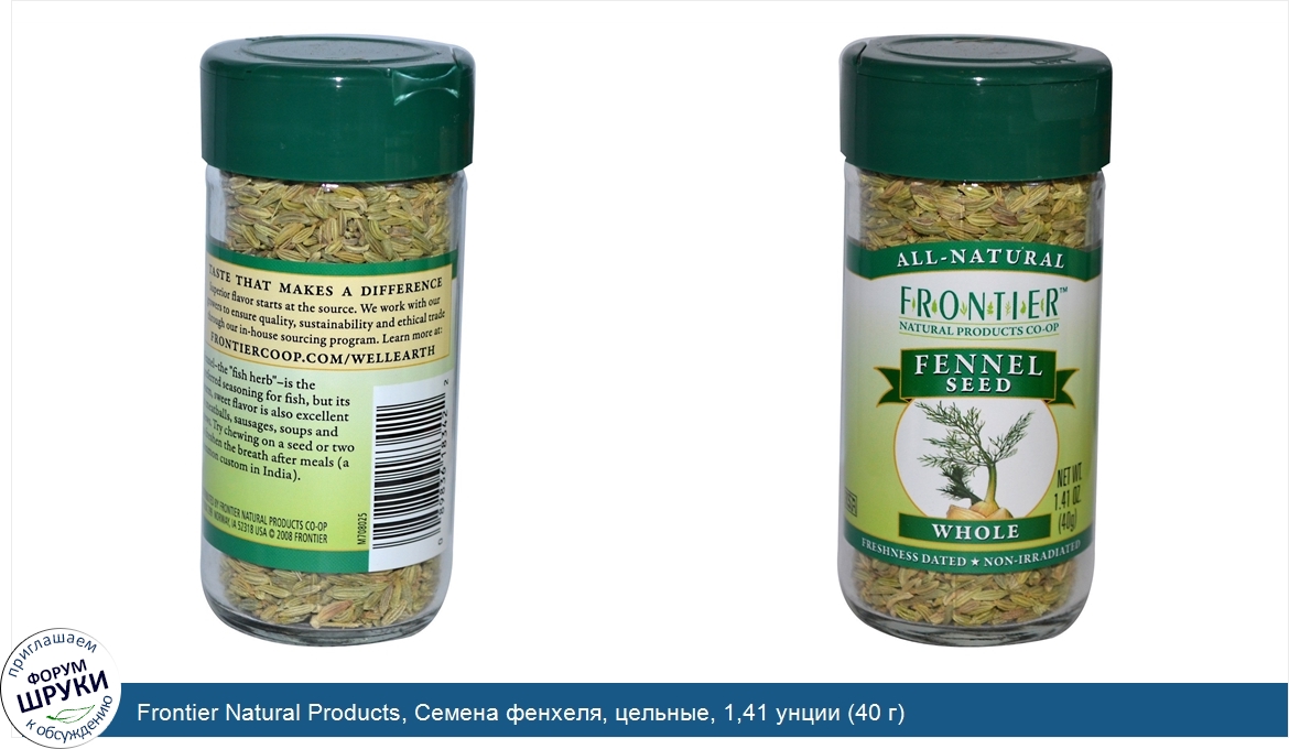 Друзья, если у вас есть отзыв/дополнение/комментарий/вопрос относительно Frontier Natural Products, Семена фенхеля, цельные, 1,41 унции (40 г) - напишите его ответом в эту тему (это будет полезно всему сообществу в целом и вам в отдельности).