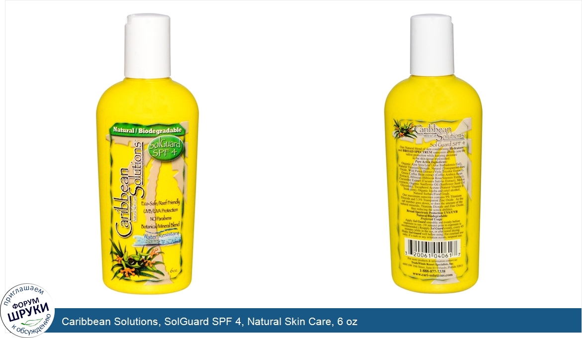 Caribbean Solutions, SolGuard SPF 4, Natural Skin Care, 6 oz