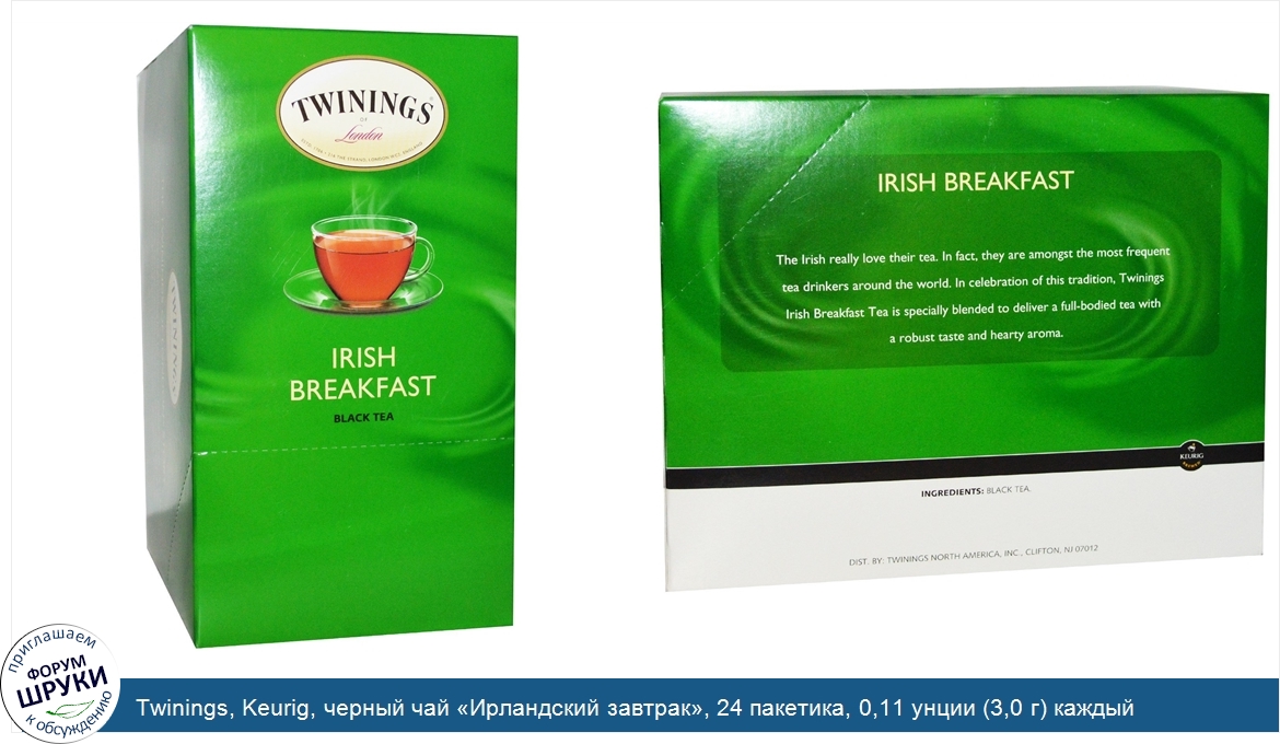 Друзья, если у вас есть отзыв/дополнение/комментарий/вопрос относительно Twinings, Keurig, черный чай «Ирландский завтрак», 24 пакетика, 0,11 унции (3,0 г) каждый - напишите его ответом в эту тему (это будет полезно всему сообществу в целом и вам в отдельности).