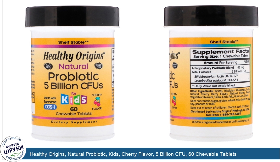 Друзья, если у вас есть отзыв/дополнение/комментарий/вопрос относительно Healthy Origins, Natural Probiotic, Kids, Cherry Flavor, 5 Billion CFU, 60 Chewable Tablets - напишите его ответом в эту тему (это будет полезно всему сообществу в целом и вам в отдельности).