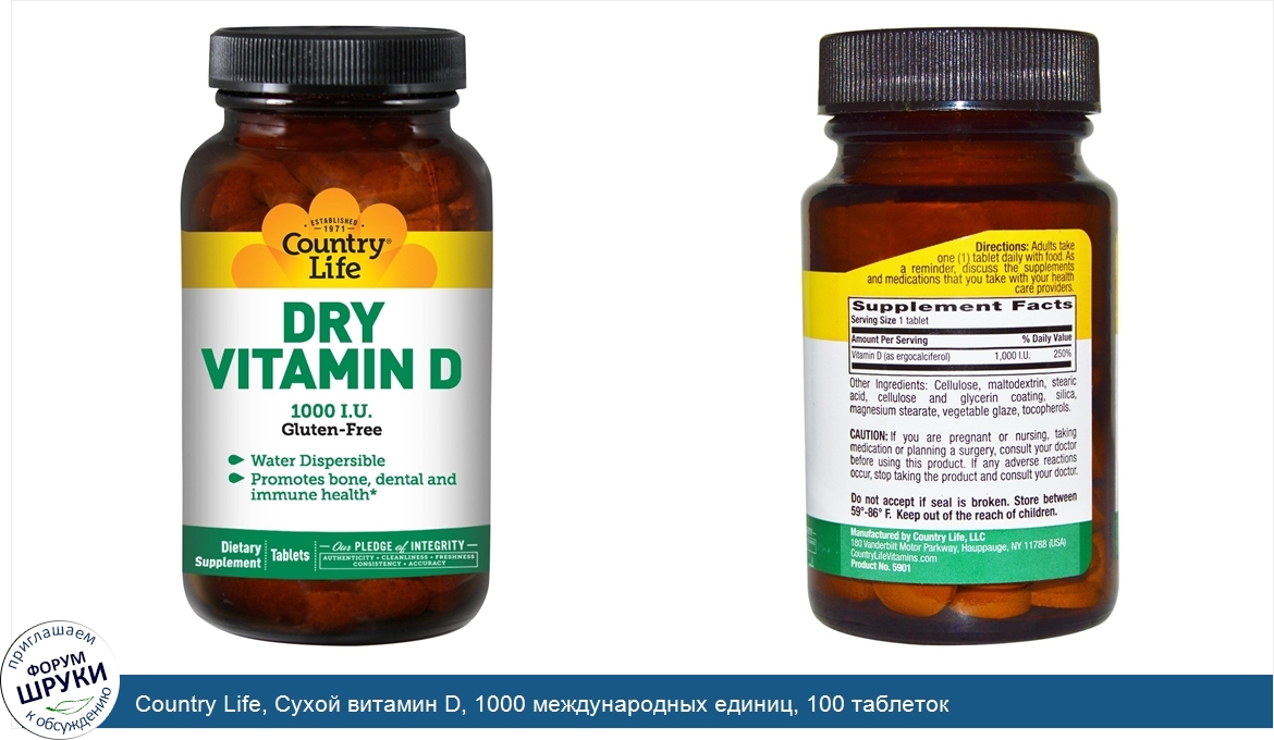 Друзья, если у вас есть отзыв/дополнение/комментарий/вопрос относительно Country Life, Сухой витамин D, 1000 международных единиц, 100 таблеток - напишите его ответом в эту тему (это будет полезно всему сообществу в целом и вам в отдельности).