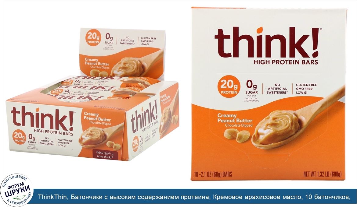 Друзья, если у вас есть отзыв/дополнение/комментарий/вопрос относительно ThinkThin, Батончики с высоким содержанием протеина, Кремовое арахисовое масло, 10 батончиков, 2.1 унция (60 г) в каждом - напишите его ответом в эту тему (это будет полезно всему сообществу в целом и вам в отдельности).
