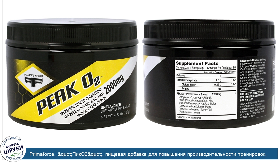 ru Primaforce, "ПикO2", пищевая добавка для повышения производительности тренировок, 2000 мг, 4,23 унции (120 г)