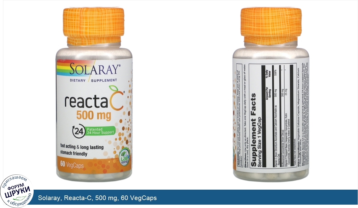 Друзья, если у вас есть отзыв/дополнение/комментарий/вопрос относительно Solaray, Reacta-C, 500 mg, 60 VegCaps - напишите его ответом в эту тему (это будет полезно всему сообществу в целом и вам в отдельности).
